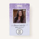 ID Badge featuring a chic script, modern typeface, and purple glitter effect. Add your logo and employee's photo to the badge.