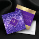 Purple Glitter Geometric Gold Frame Stylish Square Business Card