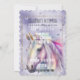 Purple Glitter Hearts Unicorn Invitation
