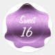 Chic graphics, of a faux purple glitter look faux wax seal envelope sticker. Text in white reads Sweet 16, and can be personalised to read what you want. Great as seals for your special occasion invitation envelopes.
