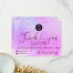 Modern pastel purple rainbow glitter ombre sparkles heart black and holographic marble business order thank you with a brushed script typography . Add your social media. With an elegant signature script font, all the colours are editable , add your logo.