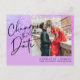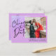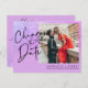 Purple glitter photo wedding change the date announcement postcard
