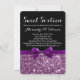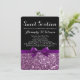 Pretty purple glitter background pattern print and ribbon with bow, printed on this adorable, chic and sassy sweet sixteen birthday party invitation for the girl with a fashionable sense of style and grace. Sparkly faux glitter is less messy than the real thing, and the beautiful bow is a wonderful printed touch.
