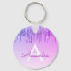 Purple Modern Ombre Faux Dripping Glitter and Sparkle Elegant Keychain. These Keychains can be customised to include your initial and first name and are a perfect anniversary, wedding, bridal shower, bachelorette party or birthday party favour.