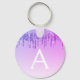 Purple Modern Ombre Faux Dripping Glitter and Sparkle Elegant Keychain. These Keychains can be customised to include your initial and first name and are a perfect anniversary, wedding, bridal shower, bachelorette party or birthday party favour.