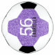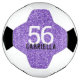 Purple glitter printed pattern on a soccer ball featuring a custom team number and name that can also be personalised with a monogram or initials for a girly soccer player.