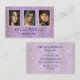 stylish handwriting makeup and hair ,three beauty photos, purple glitters background minimalist Business Card,custom.