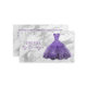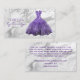Elegant dress seamstress business card, with graphics of a purple glitter dress, against a silver and white marbled looking background, with faux diamond accents. Personalise the text to suit your business needs. A lovely stand out card for your tailoring business.