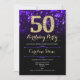 50th birthday party invitation. Elegant purple design with faux glitter gold. Features stylish diamonds, bokeh lights and script font. Men or women bday invite. Perfect for a stylish adult birthday party. Personalise with your own details. Message me if you need further customisation. Printed Zazzle invitations or instant download digital printable template.
