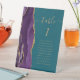 Purple Gold Agate Script Teal Wedding Table Number Pedestal Sign