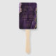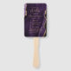 This elegant, modern wedding program fan features a purple agate background trimmed with gold faux glitter. The text appears in gold-coloured handwriting and copperplate fonts.
