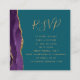 Purple Gold Agate Teal Blue Wedding QR Code RSVP Enclosure Card