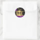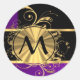 Personalise this chic elegant plain violet purple gold and black coloured modern contemporary striped pattern and black background and gold metal look ornate vintage baroque monogrammed swirl circle design on a black stripe by adding your monogram initials to the template to make a unique modern custom personalised gift. PLEASE NOTE the gold is not metallic.