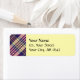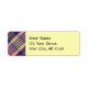 Purple, golden yellow and blue tartan design. Seamless pattern. Two custom text fields for name and address.