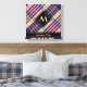 Purple, golden yellow and blue tartan design. Seamless pattern. Custom text and monogram.