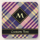 Purple, golden yellow and blue tartan design. Seamless pattern. Custom text and monogram.
