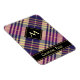 Purple, golden yellow and blue tartan design. Seamless pattern. Custom text and monogram.