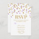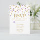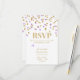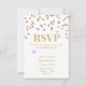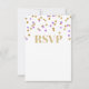 Wedding RSVP cards with bright purple and glamourous gold glitter confetti pattern. Available in many matching wedding products. (please note glitter effect is print only.)