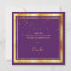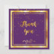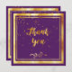 A purple background colour and a faux gold frame. With a golden confetti rain. On front a hand lettered style script and the text: Thank You! and a floral faux gold decor.