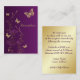 This pretty purple and gold floral reception enclosure card has gold FAUX glitter (simulated) butterflies and purple flowers on it that matches the wedding invitation shown below. PLEASE NOTE that there is no embossing or any raised images. You can also use it as a directions card, a gift registry or wishing well card, or wedding information card by changing the text accordingly. ****PLEASE NOTE that everything will print as you see it on your monitor. I will not see your product and Zazzle will NOT edit anything for typos, alignment etc., so please make sure your all text is centred and error-free. If you need assistance, please email me BEFORE you place your order. If you require any matching items, please email your request to niteowlstudio@gmail.com.