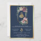 Purple Gold Floral Crest Navy Blue Muslim Wedding Invitation
