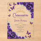 Purple, gold and white Quinceanera celebration invitation. Features, script font, gold butterflies, watercolor roses and tiara. Perfect for an elegant princess style glam celebration. Personalize with your own details. Stylish transparent or frosted acrylic invitations.