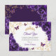Purple gold Quinceanera celebration thank you card. Features, script font, butterflies, watercolor roses and tiara. Perfect for an elegant princess style glam celebration. Personalize with your own details.