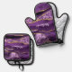 Purple Gold Glitter Marble Custom Name Oven Mitt & Pot Holder Set