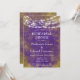 A richly coloured purple wedding rehearsal dinner invitation featuring a gold faux metallic distressed background with festive hanging lights.