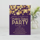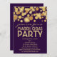 This modern stylish design features a gold bokeh dot design with a purple background. While this particular invite is made for Mardi Gras Fat Tuesday parties, it's also great for Engagement, Birthday, Bachelorette parties or New Year's Eve. Personalise this invitation with the details of your party. The back also has plenty of room for information.