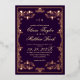Modern stylish purple wedding invitation. White with foil gold on with a gold ink pour effect and modern calligraphy. Classy and elegant, luxury and modern invitation.