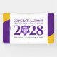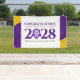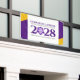 Colleges, universities, high schools, and institutes of higher learning can add sophistication to graduation ceremonies with this modern, contemporary banner, which features elegant lettering set on purple, gold, and white backgrounds. Customise with congratulatory message, graduating year, name of school/college/university, academic logo and/or slogan. Colours and font types can be modified as desired.