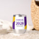 Colleges, universities, high schools, and institutes of higher learning can add sophistication to graduation merchandise with this modern, contemporary thermal wine tumbler, which features elegant lettering set on purple, gold, and white backgrounds. Customise with name of school/college/university and academic logo/motto/seal. Colours and font types can be modified as desired. Reverse shows identical design.