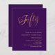 A modern, stylish invitation for a 50th birthday party. A purple coloured background and the word Fifty written with elegant large script letters in faux gold. Personalise and add a name and party details.