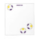 This fun soccer themed notepad features 3 tiny, randomly arranged soccer balls that have purple, gold & white panels - personalise with the athlete's / fan's / coach's name - by katz_d_zynes