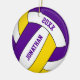 This sporty volleyball Christmas ornament features a purple, gold and white volleyball with customisable boy's name and year - by katz_d_zynes