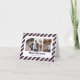 Purple and gold photo Merry Christmas folded card featuring a collage of three photos on a purple and white striped background with stars. Easily personalise this cute holiday card with your photos and text.
