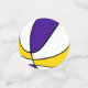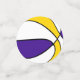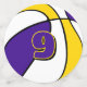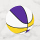 The front and back of each piece of this basketball birthday party confetti features the image of a basketball that has alternating purple, white and gold panels - customise with the child's age on one confetti piece, or delete - by katz_d_zynes