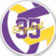 This team colours volleyball sticker features the image of a purple, gold and white volleyball, upon which you can personalise the athlete's jersey number and name - by katz_d_zynes
