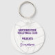 This team colours volleyball keychain features the image of a purple, gold and white volleyball on the front and a simple white volleyball on the back - personalise with the athlete's jersey number on the front and name and team name on the back - by katz_d_zynes