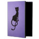 Elegant cat iPad Air case with a beautiful illustration of a gracious evil black cat with glowing eyes on a night watch in the dark purple haze.