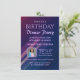 Custom birthday dinner party invitation with purple and blue gradient background. Features fully editable lines to personalise for birthday party or any occasion, including guest of honour's photo, party details, RSVP, and more info. Available for print and instant download.