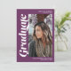 Modern and purple and white graduate script open house photo graduation. Add 3 of your favourite photos with an elegant retro style font and photo grid collage.