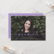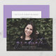 This full bleed photo graduation announcement features the word "graduate" written in purple script across the front. It has space for the graduate's name, class year, and school. The back of the card can be used for a personal message or graduation party invitation details.