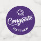 Add some extra style to your favourite grad’s celebration party with this customisable table confetti! On one side, bold, graphic, white handwritten script calligraphy, sans serif typography and a grad cap icon overlay a deep purple background. 3 photos of your choice are on the back. Personalise the custom text with your graduate’s name, class year and school/special message. Matching invites, thank you cards, hand fans, banners, yard signs and other graduation goodies are also available in this trendy and stylish collection. Guaranteed to add extra fun at their special celebration!