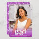 Be proud, rejoice and showcase this milestone of your favourite grad! Send out this stunning, simple, modern, personalised photo announcement for an event to remember. Bold, graphic, white typography and a vivid purple gradation overlay a photo of your choice. Personalise the custom text with your grad’s name, school and class year. Matching invites, thank you cards, cap toppers, napkins, plates and other graduation goodies are also available in this trendy and stylish collection. Guaranteed to add stylish fun to her special occasion!
