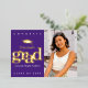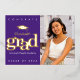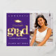 Announce to the world that your favourite grad has reached their milestone with this stunning, simple, modern, personalised announcement. Bold, stark, graphic, white typography and real gold foil cap icon overlay a black background. On the right hand side, add a photo of your choice. Personalise the custom text with your graduate’s name, school name, and class year. On the back, under the white cap icon, add your personal note, next school they’re attending, party information, etc. Matching and coordinating thank you cards, cap toppers, fans, napkins, plates, banners and other graduation goodies are also available in this trendy and stylish collection. Guaranteed to add stylish fun to their special occasion!