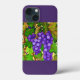 Phone case in a richly detailed grapevine with deep purple grapes and green leaves