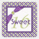 This purple, green, and white polka dot sweet 16 square shaped sticker/envelope seal matches the sweet sixteen invitation shown below. If there are any other matching items you require, please email niteowlstudio@gmail.com with your request.