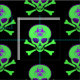 Green, purple and black biohazard symbol skull and crossbones pattern fabric. Choose from several types of fabric in natural or synthetic fibers. Pattern size may be adjusted via the "customize" option on the product page if you need a specific size for an art project, scale model, doll clothes, etc.